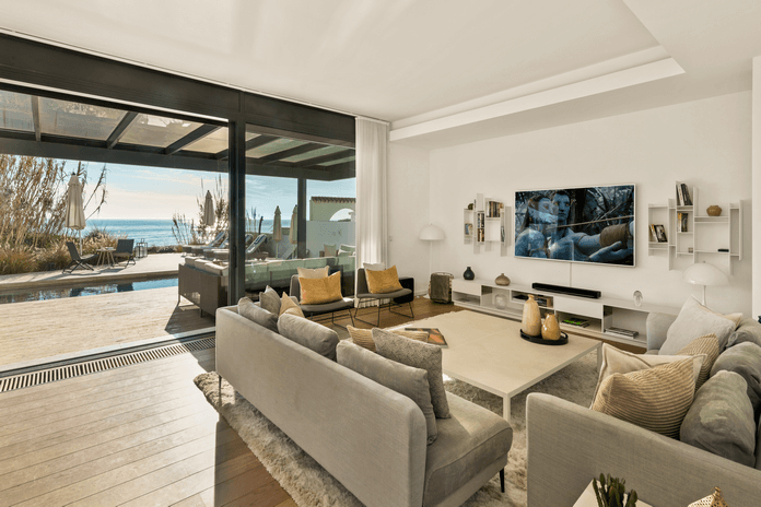 This spectacular frontline property is set right on the Costabella beach surrounded by golden sand.